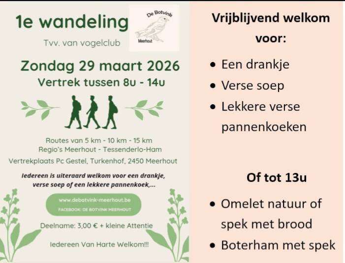 Het bestuur van vogelclub “ de Botvink “ Meerhout heet u van harte welkom op onze website.